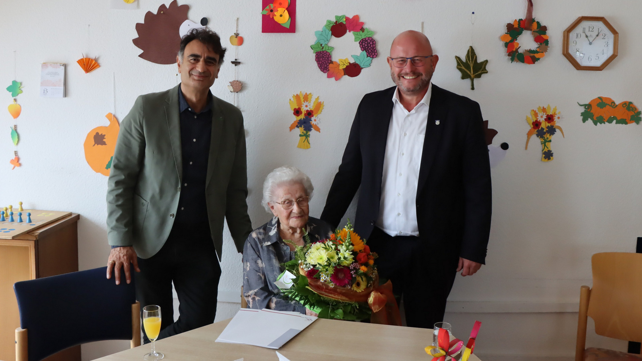 KREIS GROSS-GERAU – Eine muntere Runde traf sich am Vormittag des 15. September im Seniorenhaus am Park in Riedstadt-Goddelau, um einen ganz besonderen Geburtstag zu feiern: Elfriede Behrendt, die seit knapp 65 Jahren in Goddelau lebt, wurde 102 Jahre alt. Zu den Gratulanten gehörten auch Bürgermeister Marcus Kretschmann und Erster Kreisbeigeordneter Adil Oyan, die die Glückwünsche der Büchnerstadt und des Kreises Groß-Gerau überbrachten.