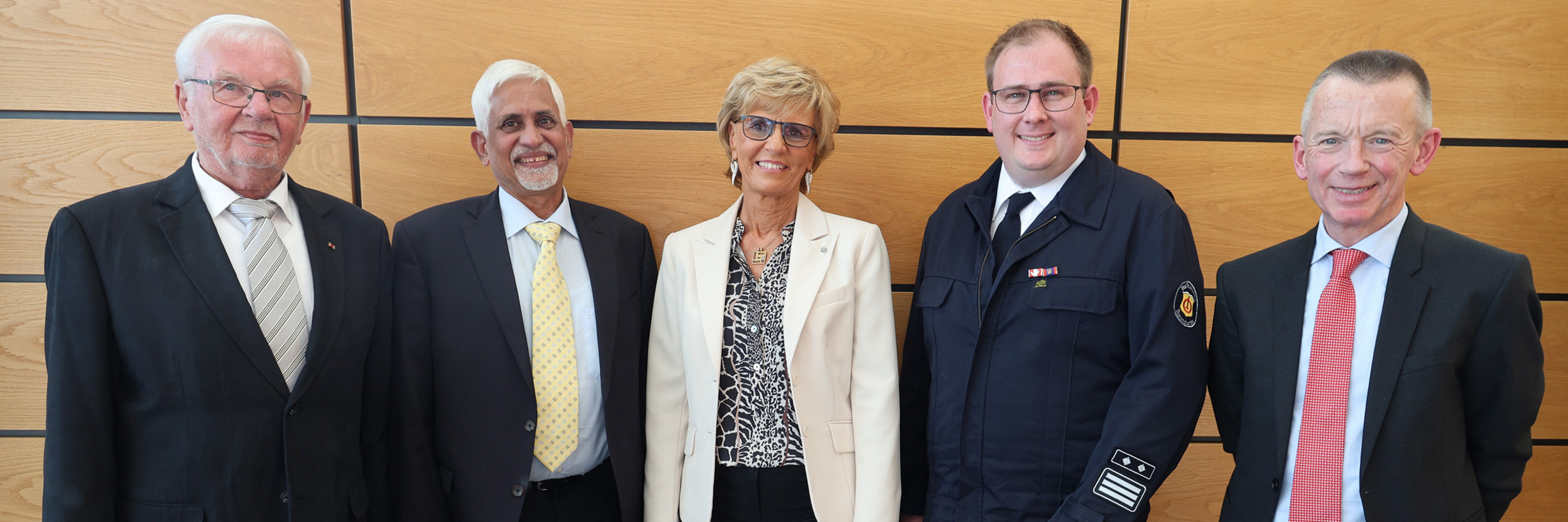 Zudem wurde Jan Christopher Gräf, Stadtbrandinspektor der Freiwilligen Feuerwehr Raunheim, für seine Leistungen und Engagement mit dem Feuerwehr-Ehrenkreuz in Bronze ausgezeichnet. Nach seiner Zeit in der Jugendfeuerwehr (1996 – 2003) wechselte Jan Gräf in die Einsatzabteilung der Freiwilligen Feuerwehr Raunheim. Damit startete zugleich seine Aufgabe als Jugendfeuerwehrbetreuer, die er bis Ende 2015 wahrnahm. Seit 2016 ist er Stadtbrandinspektor der Raunheimer Feuerwehr.