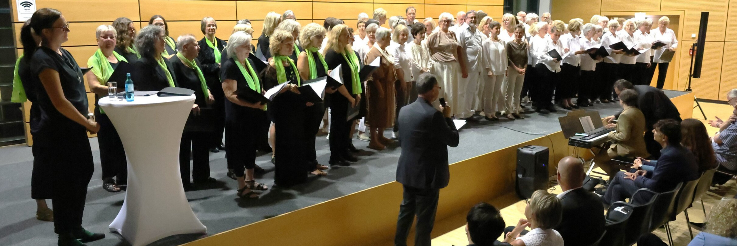 KREIS GROSS-GERAU – Volles Haus beim Abend der Chöre im Groß-Gerauer Landratsamt: Chöre von Germania 1857 Raunheim, die Greensingers Stockstadt und der Walldorfer Gospelchor gestalteten das abwechslungsreiche Programm am Sonntagabend, 22. September, im Georg-Büchner-Saal. Durch den rund zweistündigen Abend mit deutschen und englischsprachigen Liedern führte Kreischorleiter Hanno Kirsch vom Sängerkreis Mainspitze. Nach dem Abschluss-Kanon „Immer wenn ich abgespannt und müde bin“ mit allen Sängerinnen und Sängern gab es vom begeisterten Publikum Standing Ovations für die Aktiven.