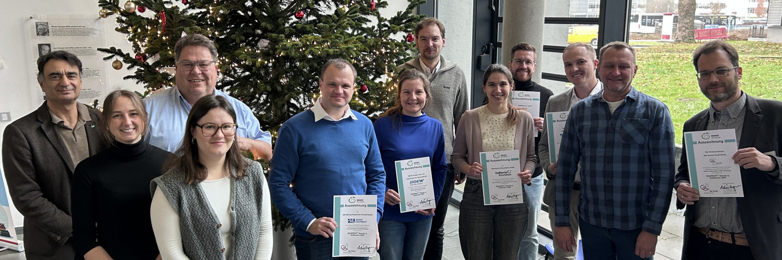 Am 5. Dezember 2025 war es wieder soweit: Die sieben Betriebe konnten ihre Urkunden von Adil Oyan, dem Ersten Kreisbeigeordneten des Kreises Groß-Gerau, im Landratsamt entgegennehmen. Oyan freute sich über das Engagement der Betriebe: Gerade in einer Zeit, in der intensiv über die Energiewende diskutiert wird, braucht es Unternehmen, die vorangehen. Oyan hob dabei gute Maßnahmen aller teilnehmenden Unternehmen hervor.