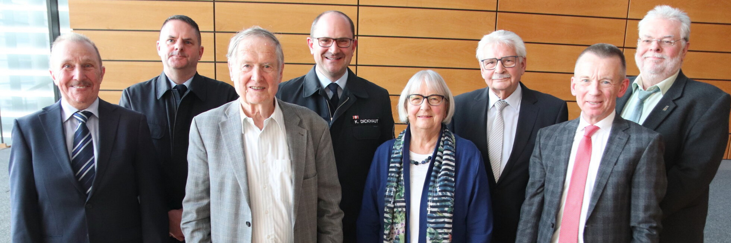 KREIS GROSS-GERAU – In der ersten Feierstunde des Jahres 2024 am Freitag, 19. Januar, überreichte Landrat Thomas Will Urkunden an sechs Männer und eine Frau, die sich um den Kreis Groß-Gerau verdient gemacht haben. Das Bundesverdienstkreuz erhielt der frühere Groß-Gerauer Forstamtsleiter Henner Gonnermann (Marburg). Landesehrenbriefe erhielten Hildegard Saltzer (Gernsheim), Herbert Fückel (Trebur) sowie Volker Sperfechter und Christian Wieser aus Groß-Gerau. Die Riedstädter Kai Dickhaut (Feuerwehr-Ehrenkreuz in Bronze) und Markus Kölsch (Feuerwehrehrenkreuz in Silber) wurden für ihr Engagement bei der Freiwilligen Feuerwehr ausgezeichnet. Musikalisch umrahmt wurde die Feierstunde im Landratsamt in bewährter Weise vomTrio Tastenstreich.