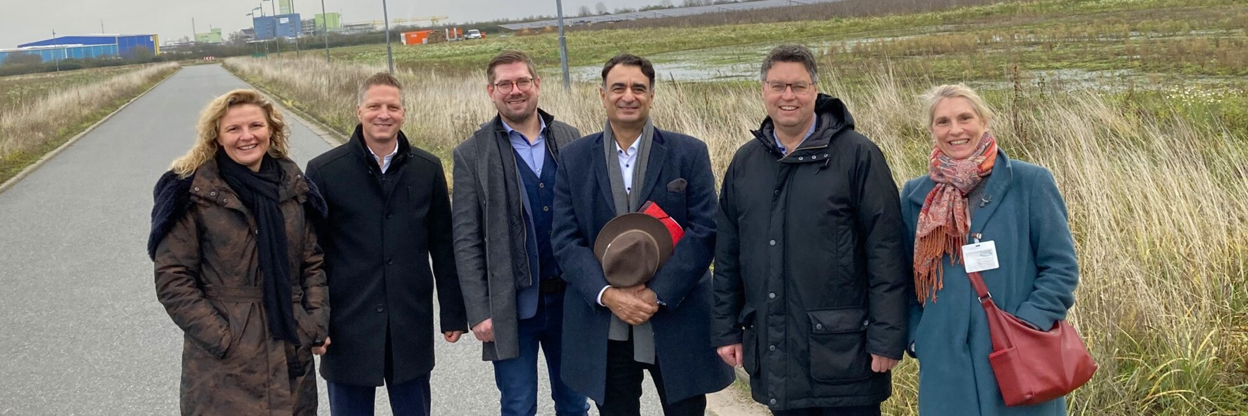 KREIS GROSS-GERAU – Kurz vor Weihnachten stattete der Erste Kreisbeigeordnete Adil Oyan dem Greentech Park FLUXUM in Gernsheim einen Besuch ab. Begleitet wurde er von Vertreter*innen der Wirtschaftsförderung und Bauaufsicht.