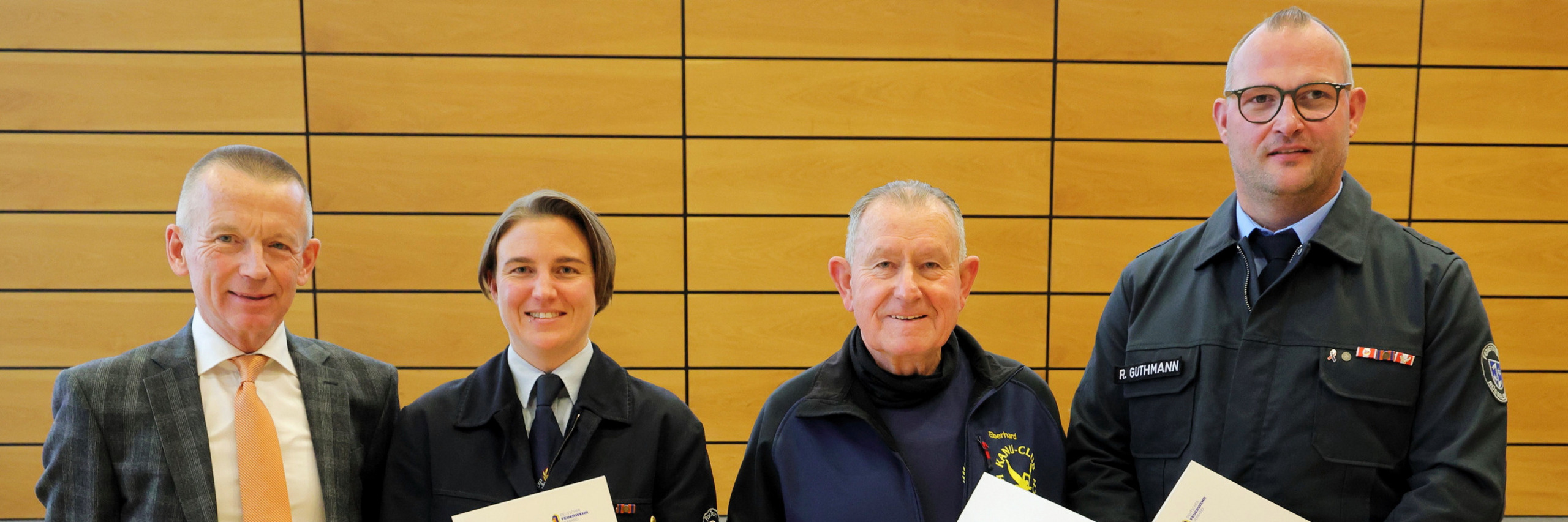 Das Feuerwehr-Ehrenkreuz in Silber erhielt Ralf Guthmann. 1988 bis 1995 war er Mitglied der Jugendfeuerwehr, in der Einsatzabteilung seit 12.10.1995, später stellvertretender Wehrführer und ab 23.2.2016 Wehrführer der Freiwilligen Feuerwehr Bauschheim. Zudem ist er seit 13 Jahren auch stellvertretender Vorsitzender des Feuerwehrvereins.
