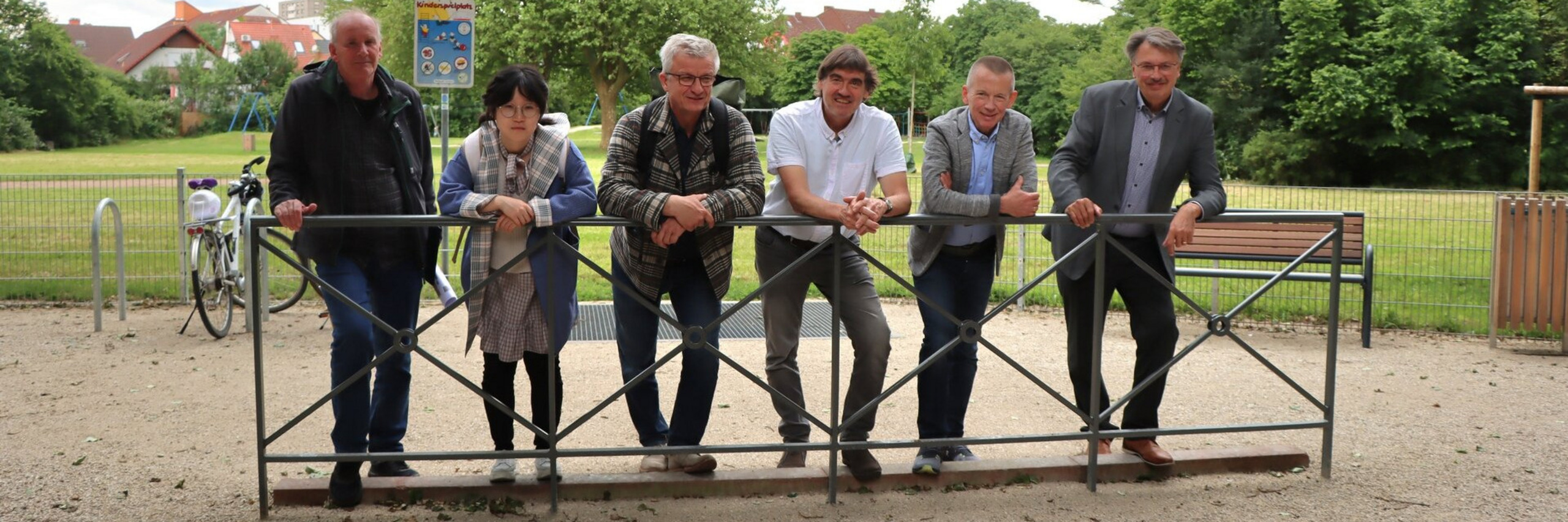 Der beauftragte Landschaftsplaner Albrecht Schaal vom Frankfurter Büro grün3 beschrieb einige der Veränderungen an der „Grünen Mitte“: Es ist eine Sichtachse zwischen der Fünfergruppe von Säulenpappeln am Gundbach und dem Platanen-Baumtor auf der Wiese entstanden. Außerdem wurden am Rand mehrere Baumgruppen neu gepflanzt. „Wir wollten Landschaft in den Spielbereich reinbringen“, sagte Albrecht Schaal. Hinzu kommen die Sitz- und „Chilling“-Möbel sowie Fahrradparkplätze.