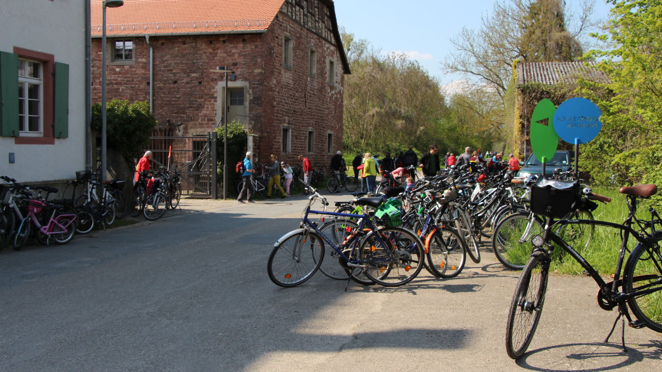 Am Umweltbildungszentrum angekommen, begrüßt dessen Leiter Ralph Baumgärtel die Gruppe und führt die Teilnehmenden dann über den Kühkopf. Das Naturschutzgebiet Kühkopf-Knoblochsaue ist nicht nur Hessens größtes Naturschutzgebiet, es ist auch ein beliebtes Ziel zum Wandern und Radfahren. Die Radtour führt über die Rheininsel an den Neurhein. An mehreren Stationen werden Lebensräume der Flussaue sowie Tier- und Pflanzenarten erläutert. Die Radtour über den Kühkopf dauert rund zwei Stunden und endet im Hofgut Guntershausen. Dann kann noch das UBZ besucht werden.
