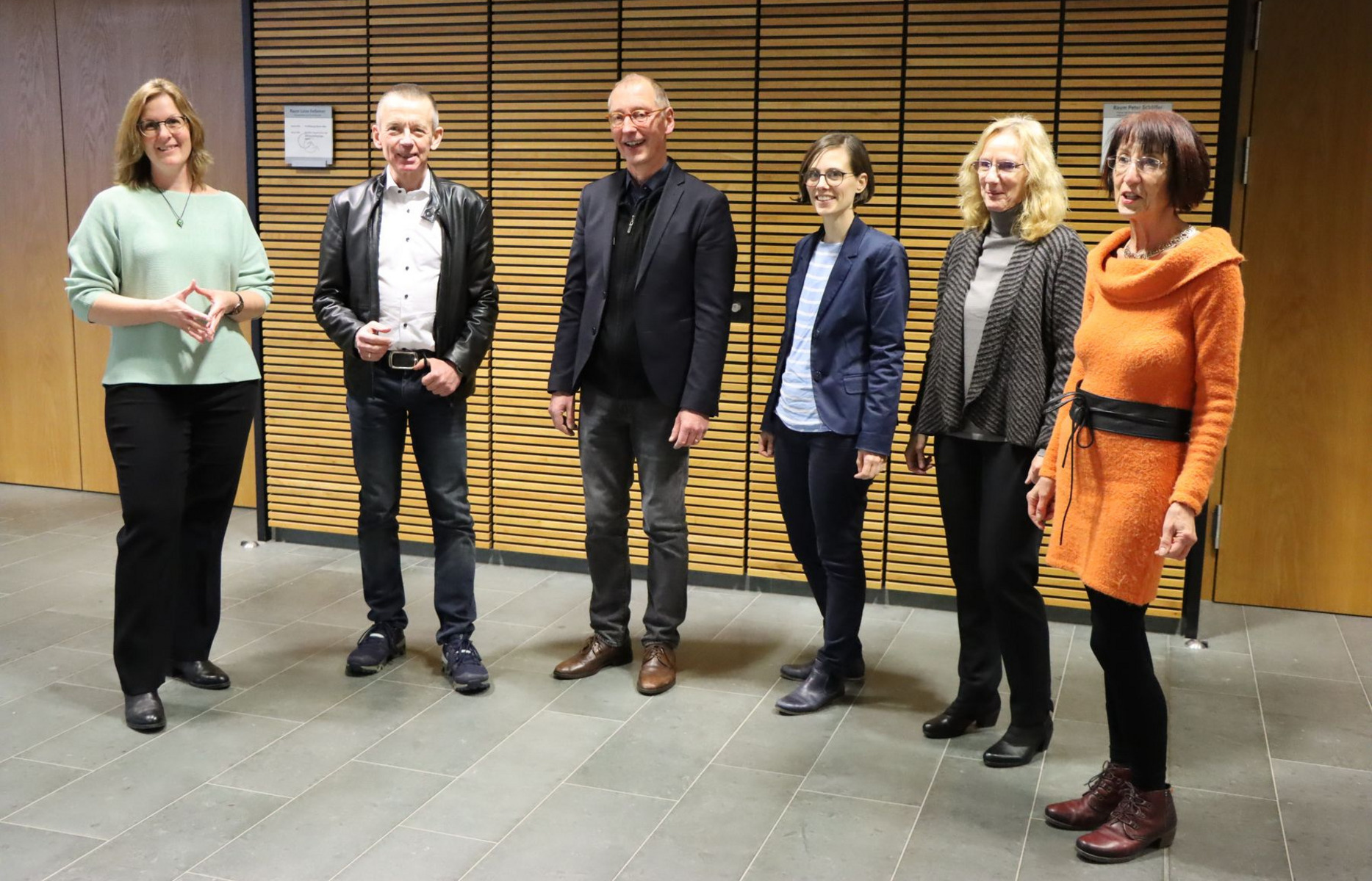 Auf dem Foto von links: Christine Plenzig, Fachbereichsleiterin Jugend und Familie, Landrat Thomas Will, Hochschulpräsident Prof. Dr. Uwe Becker, Prof. Dr. Laura Wallner, Prof. Dr. Anne-Dore Stein und Cornelia Lange, Abteilungsleiterin Hessisches Ministerium für Soziales und Integration. Foto: Kreisverwaltung
