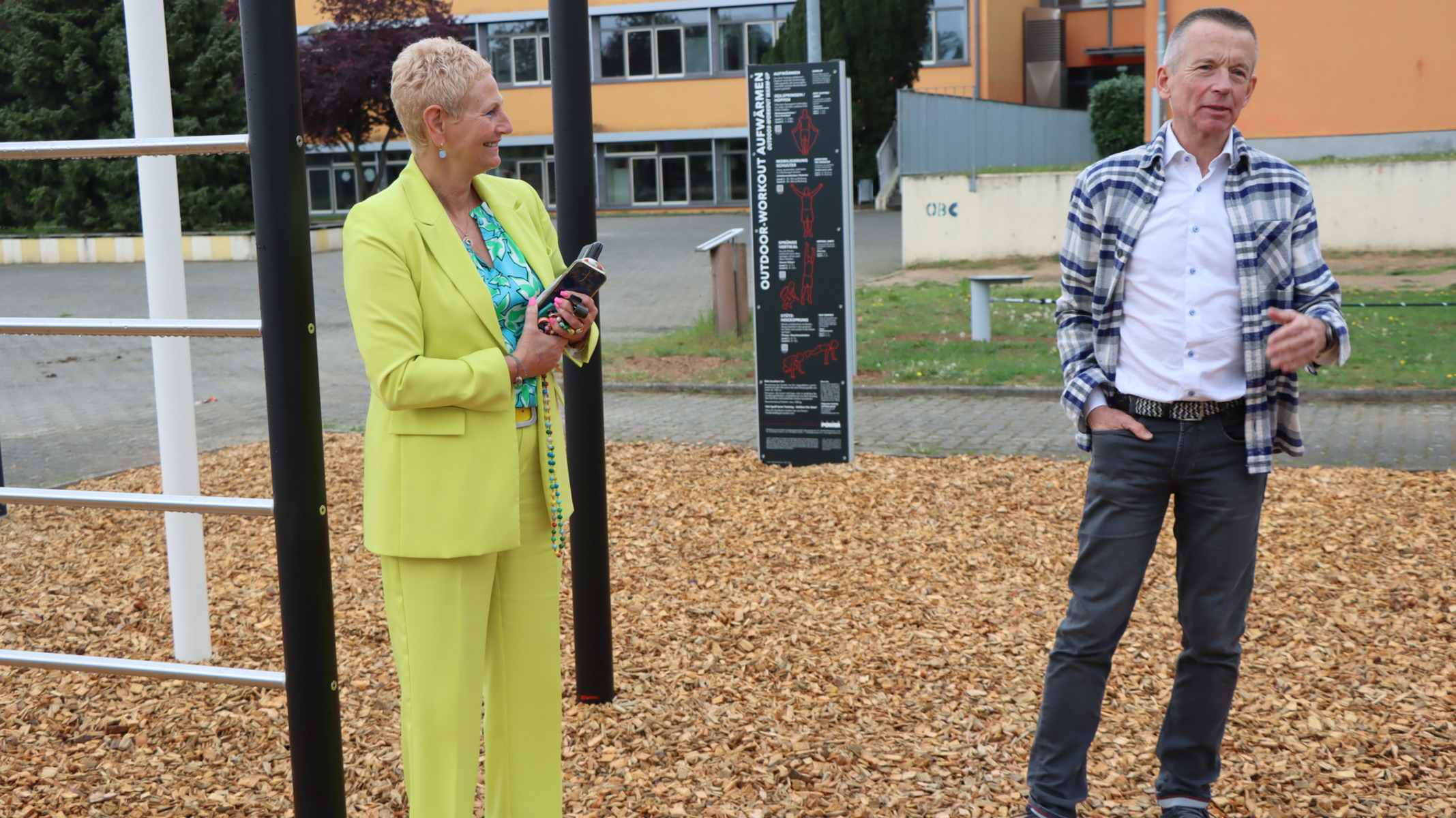 „Wir sind sehr froh, dass die Anlage nun steht“, sagte die Schulleiterin bei dem Treffen. Sie sei sicher, dass nicht nur Schülerinnen und Schüler sie nutzen werden. Die Geräte sind öffentlich zugänglich, was auch Bürgermeister Siehr begrüßt. Die Anlage in dieser Form war ein Wunsch von Stadt Ginsheim-Gustavsburg und IGS Mainspitze. Ob nun auch Vereinsmitglieder das Angebot fürs Training nutzen, Lehrkräfte etwas für ihre Fitness tun wollen, die Geräte in den Sportunterricht eingebaut werden oder Passanten sie für sich entdecken - alle sind willkommen.