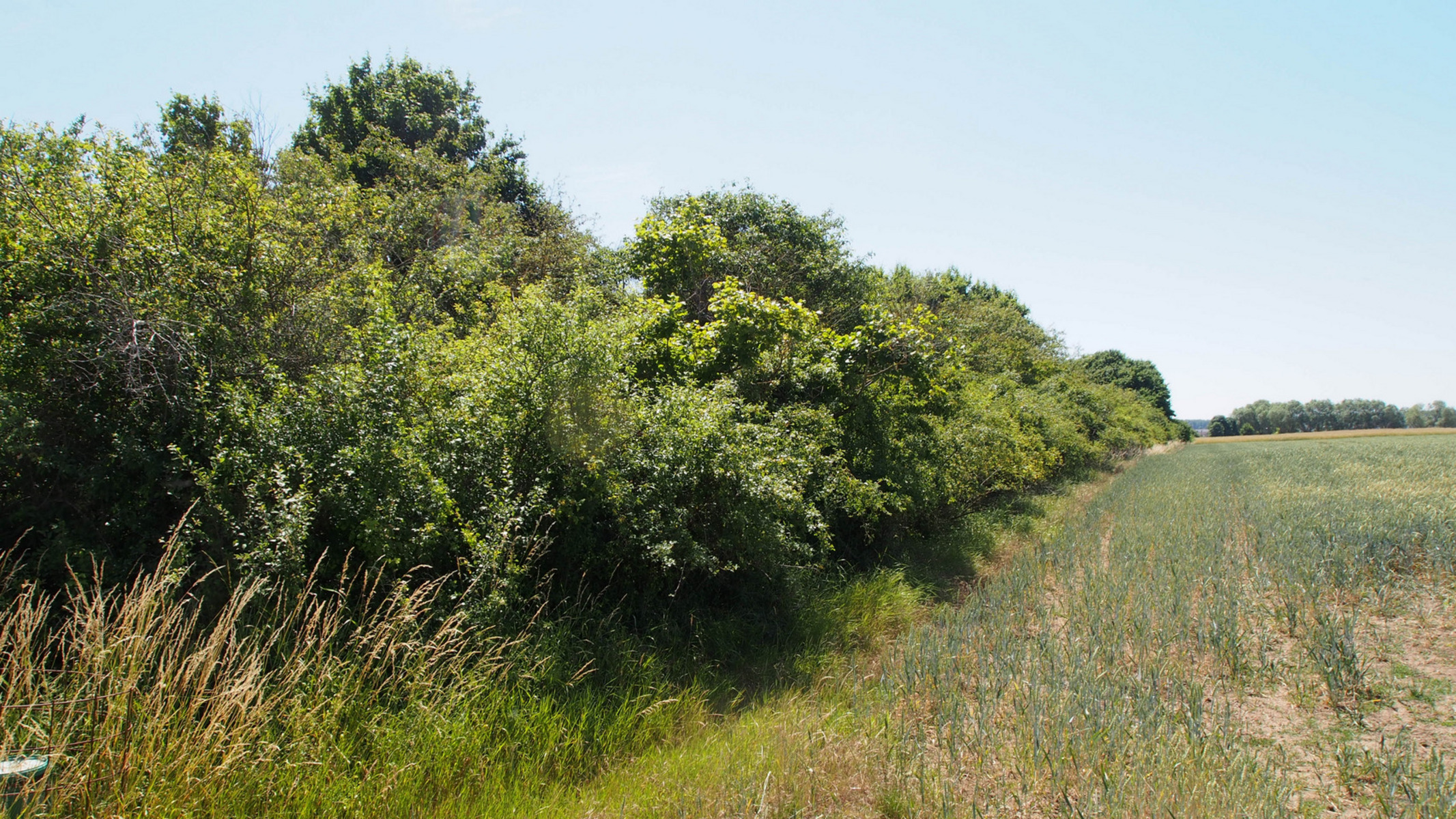 So bieten Feldgehölze zahlreichen heimischen Tieren und Pflanzen Lebensraum. Sie dienen als Nahrungsquelle, Überwinterungsquartier, Nistplatz oder als kurzfristige Deckung vor Feinden. Zu den Arten, die von Feldgehölzen profitieren, gehören beispielsweise der Neuntöter, die Goldammer, das Hermelin, der Igel und die Erdkröte. Auch viele Insekten finden hier einen Lebensraum. Besonders Pflanzenarten wie Schlehen und Schwarzdorn sind wertvolle Nahrungsquellen für Insekten, die wiederum als Bestäuber eine wichtige Rolle im Ökosystem spielen und auch für die Landwirtschaft unverzichtbar sind.