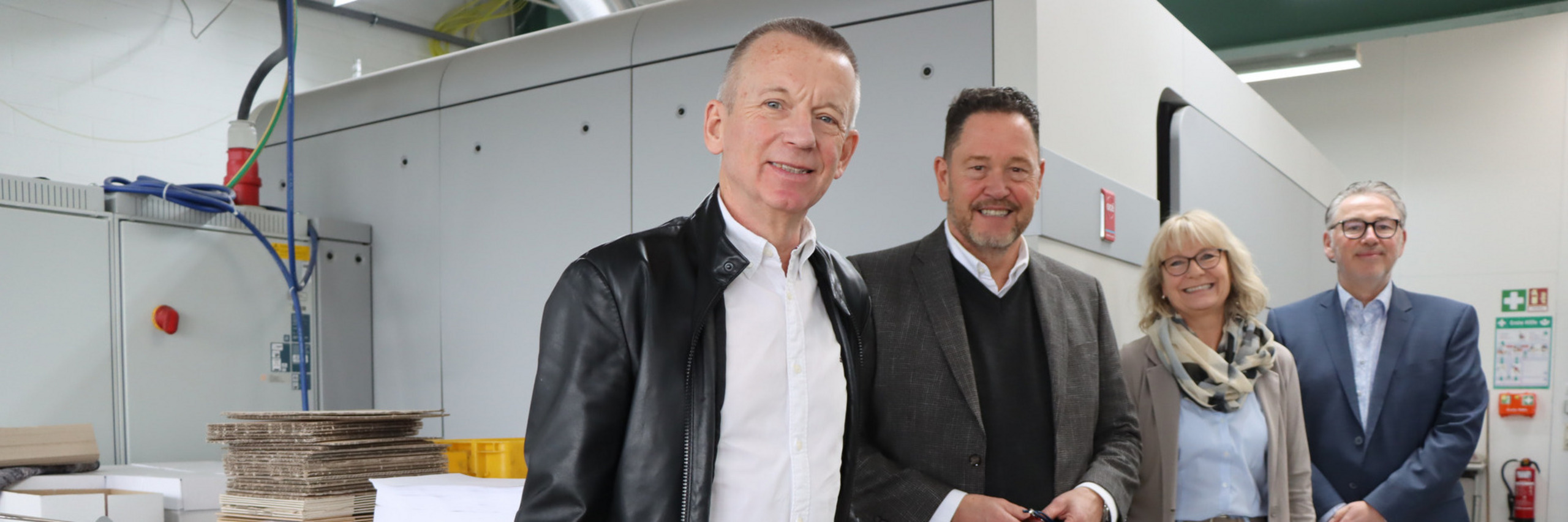 KREIS GROSS-GERAU – Bei seinen jährlich ungefähr acht Betriebsbesuchen lernt Landrat Thomas Will die große Bandbreite der Wirtschaft und der Unternehmen im Kreis Groß-Gerau kennen und vertieft bereits bestehende Kontakte. Sein jüngster Besuch führte ihn zu atrikom fulfillment in Gustavsburg. Die 1992 in Wallau gegründete Gesellschaft für Projekt-Dienstleistungen vereint Waren- und Werbemittel-Logistik, Mailing- und Response-Management sowie Promotion-Aktionen aus einer Hand, wie Geschäftsführer Daniel Deckers den Gästen erklärte. Zu den Besuchern gehörten neben dem Landrat auch Hans Peter Imhof von der Wirtschaftsförderung des Kreises Groß-Gerau, Ginsheim-Gustavsburgs Bürgermeister Thorsten Siehr und Andreas Klopp von der Wirtschaftsförderung der Stadt Ginsheim-Gustavsburg. Aus der Geschäftsführung von atrikom waren zudem Nicole Grösgen-Riek und Holger Hackbeil bei der Führung dabei.